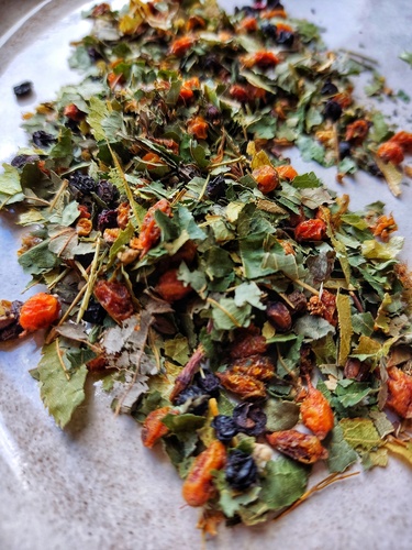 Mieszanka ziołowo - owocowa przygotowana w naszej manufakturze. To połączenie kwiatostanu lipy, mięty pieprzowej z dodatkiem owoców bzu czarnego i rokitnika sprawi, że tak przygotowany napar ziołowy poprawi samopoczucie oraz wspomoże przy przeziębieniu.